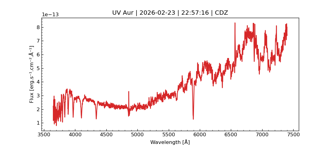 New Online Database of Symbiotic Variables Symbiotic stars with 2MASS, WISE & Gaia SIMBADNote: UV Aur is located near a early type star that contaminates the spectrum in its blue part in a significant number of results (Thanks to D. Cujedo and K. Shank for pointing this out, 2026)